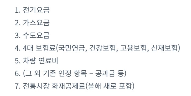 소상공인 경영안정 바우처는 소상공인들의 고정비 부담 완화에 초점을 맞춰 총 9개 항목에서 사용할 수 있습니다.