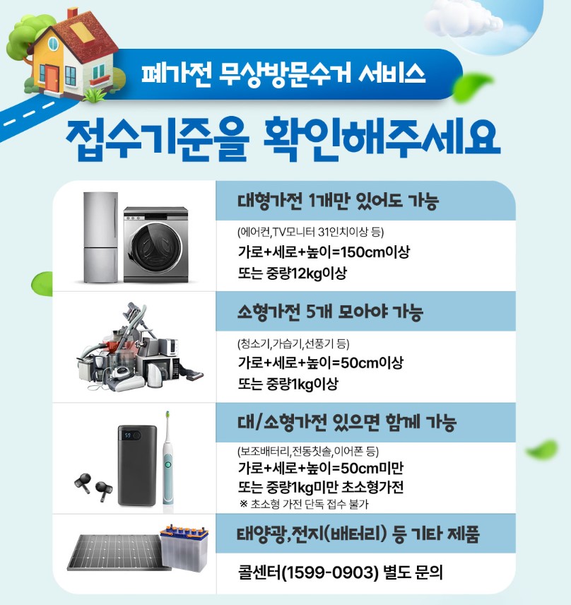 ✔ 중소형 가전 포함 여부 : 전자레인지, 공기청정기, 정수기, 선풍기 등도 지역에 따라 수거 대상에 포함될 수 있음