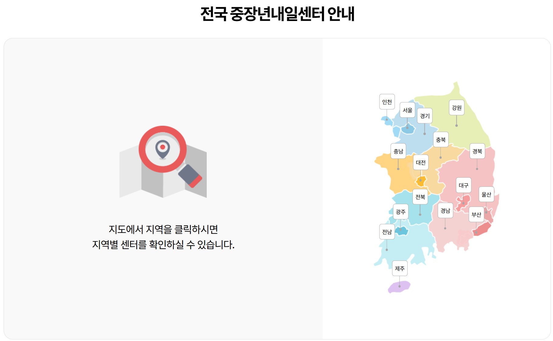 ↑ ↑ ↑ ↑ ↑ 지역별 중장년 내일센터 찾기 ↑ ↑ ↑ ↑ ↑