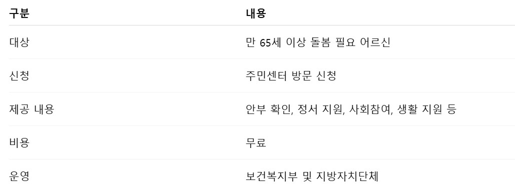 방문 안부 확인부터 생활 지원, 정서 지원까지 맞춤형으로 제공되는 제도를 자세히 안내해드립니다.